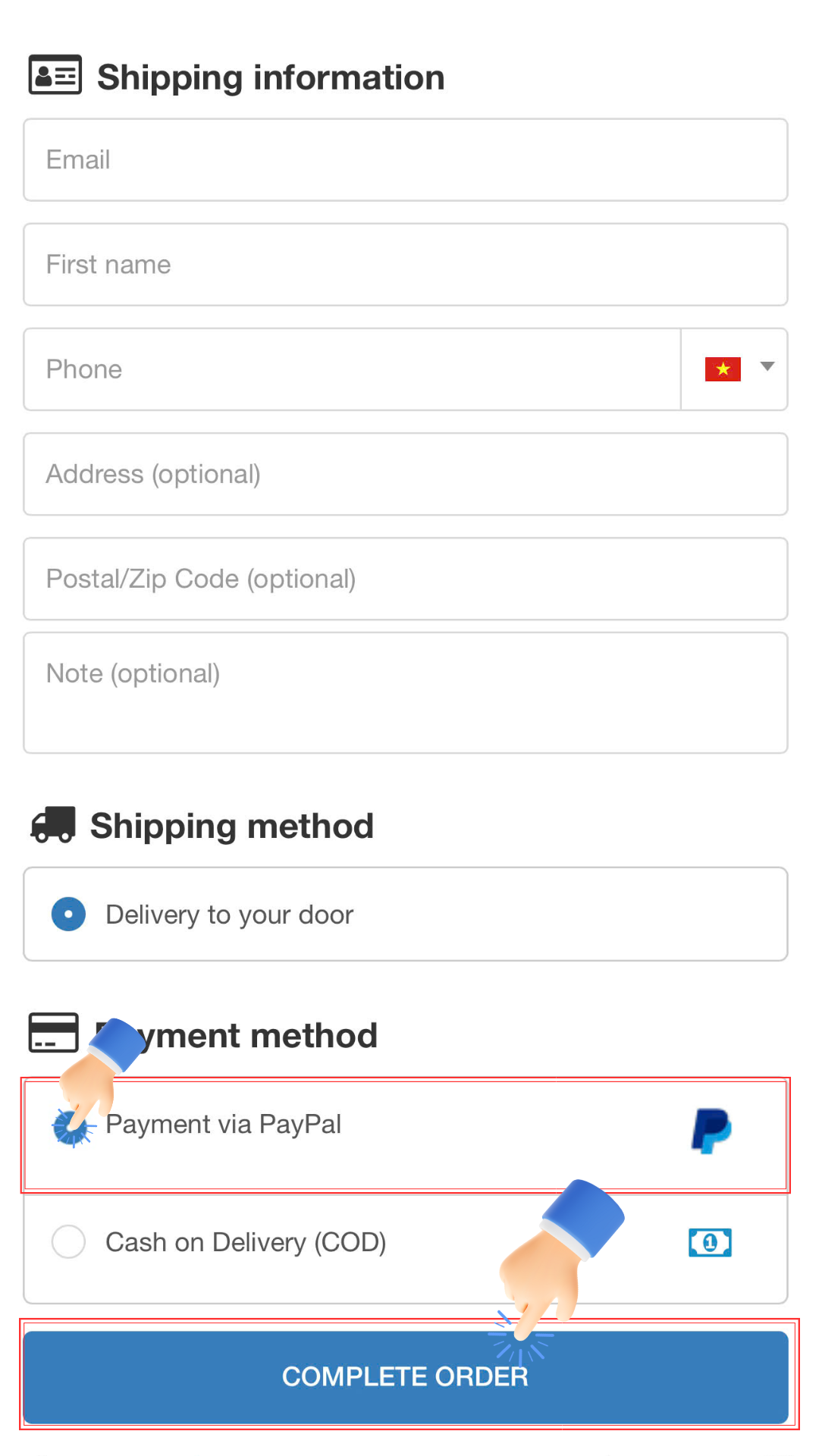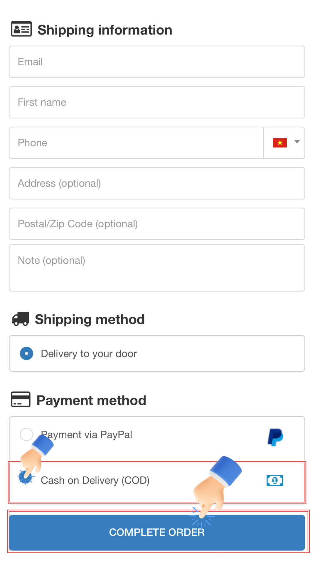 • If you choose COD delivery, we will deliver to your home before receiving the product, you can check the product, after checking, you pay cash to the delivery person.