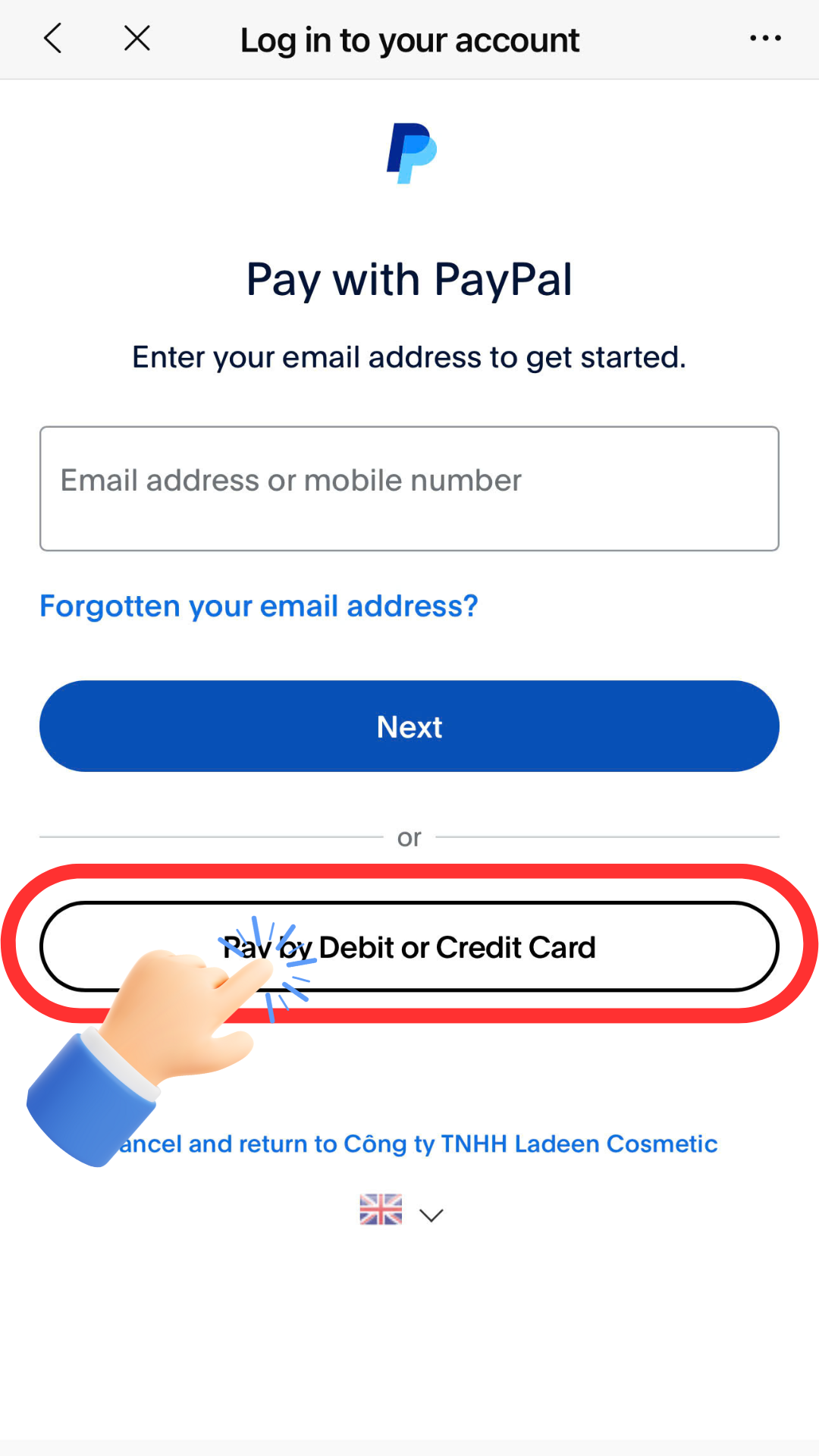• Step 2: the website will automatically switch to PAYPAL, then click " PAY BY DEBIT OR CREDIT CARD " as shown in the image below