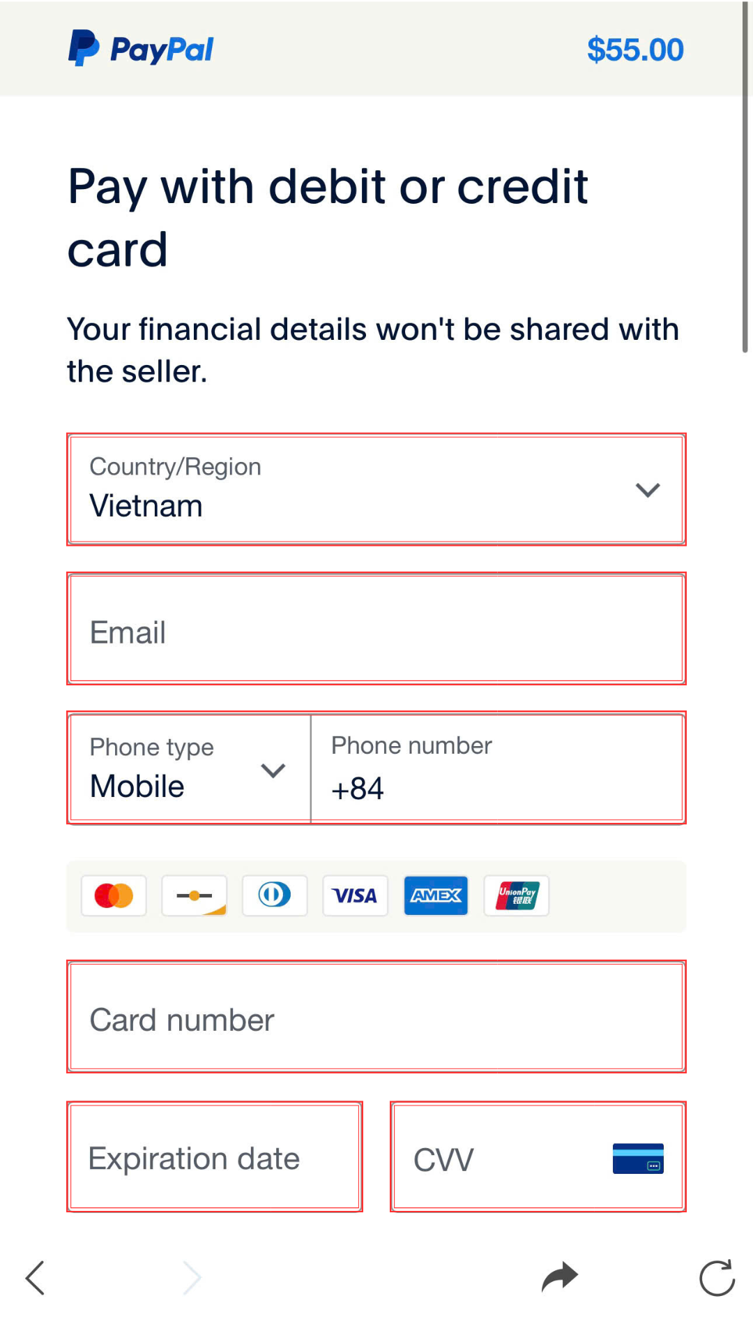 • Step 3: You need to enter your full information and your card so that the PAYPAL system can proceed with the payment: