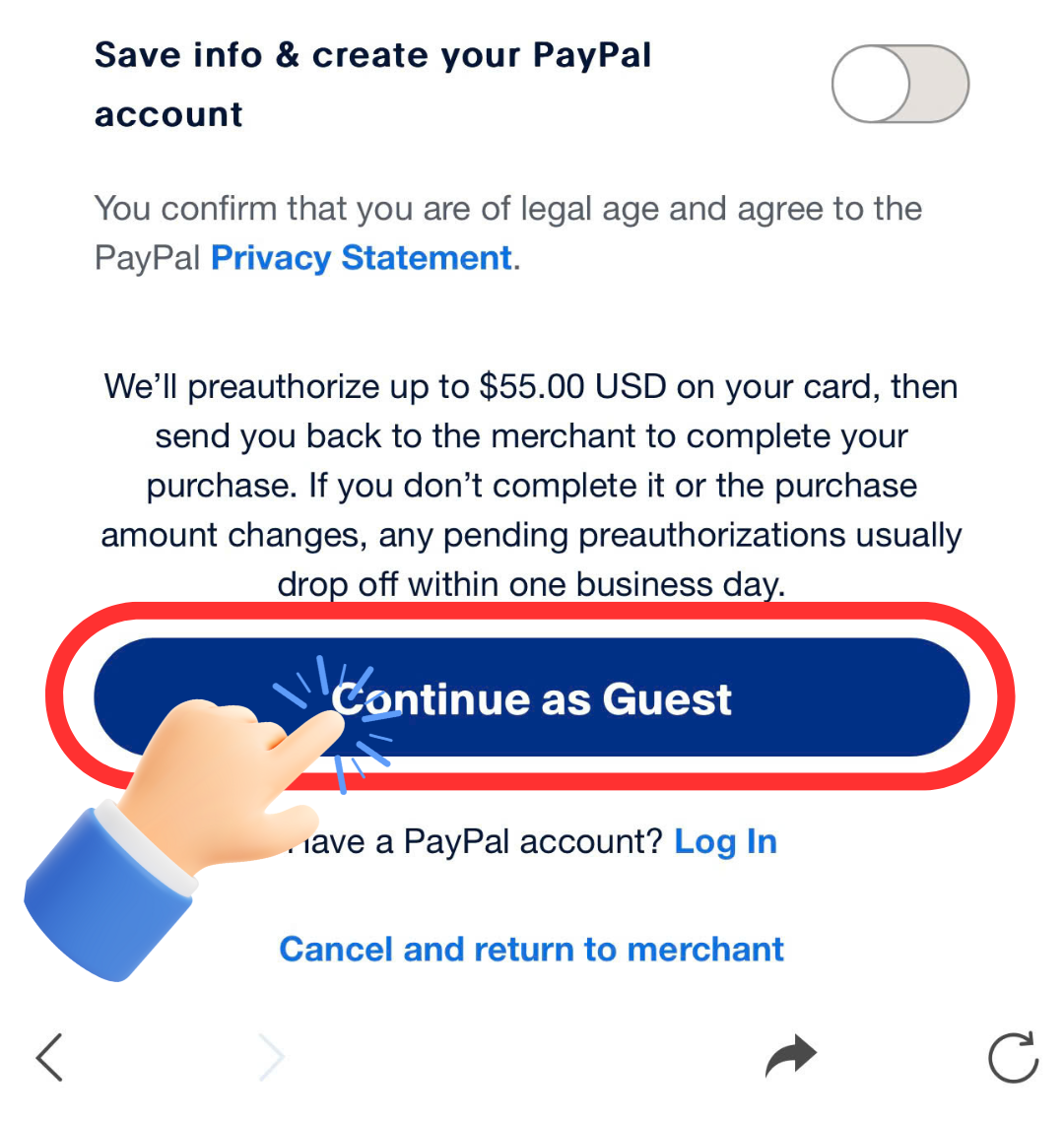 - After checking to pay, you just need to click " Continue as Guest " to pay